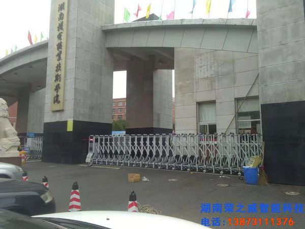 2018年11月19日湖南機電職業技術學院校門電動伸縮門安裝項目順利完成